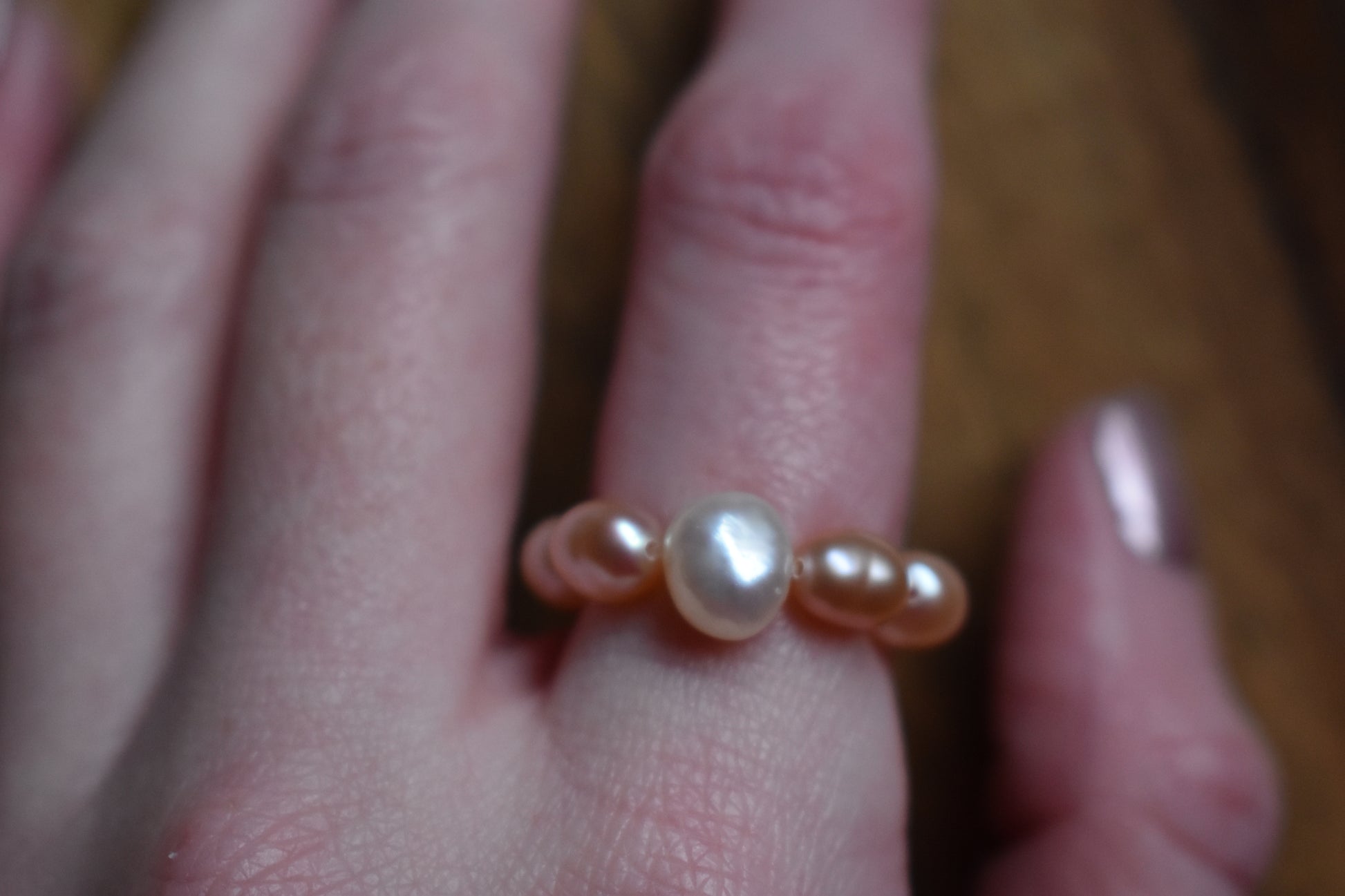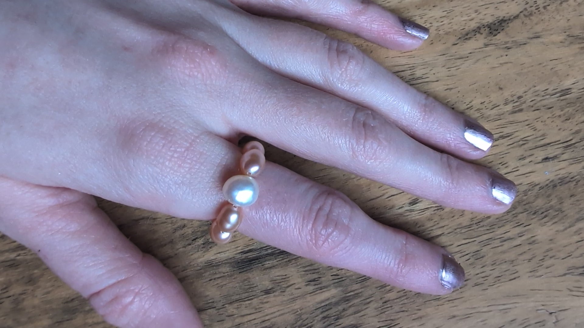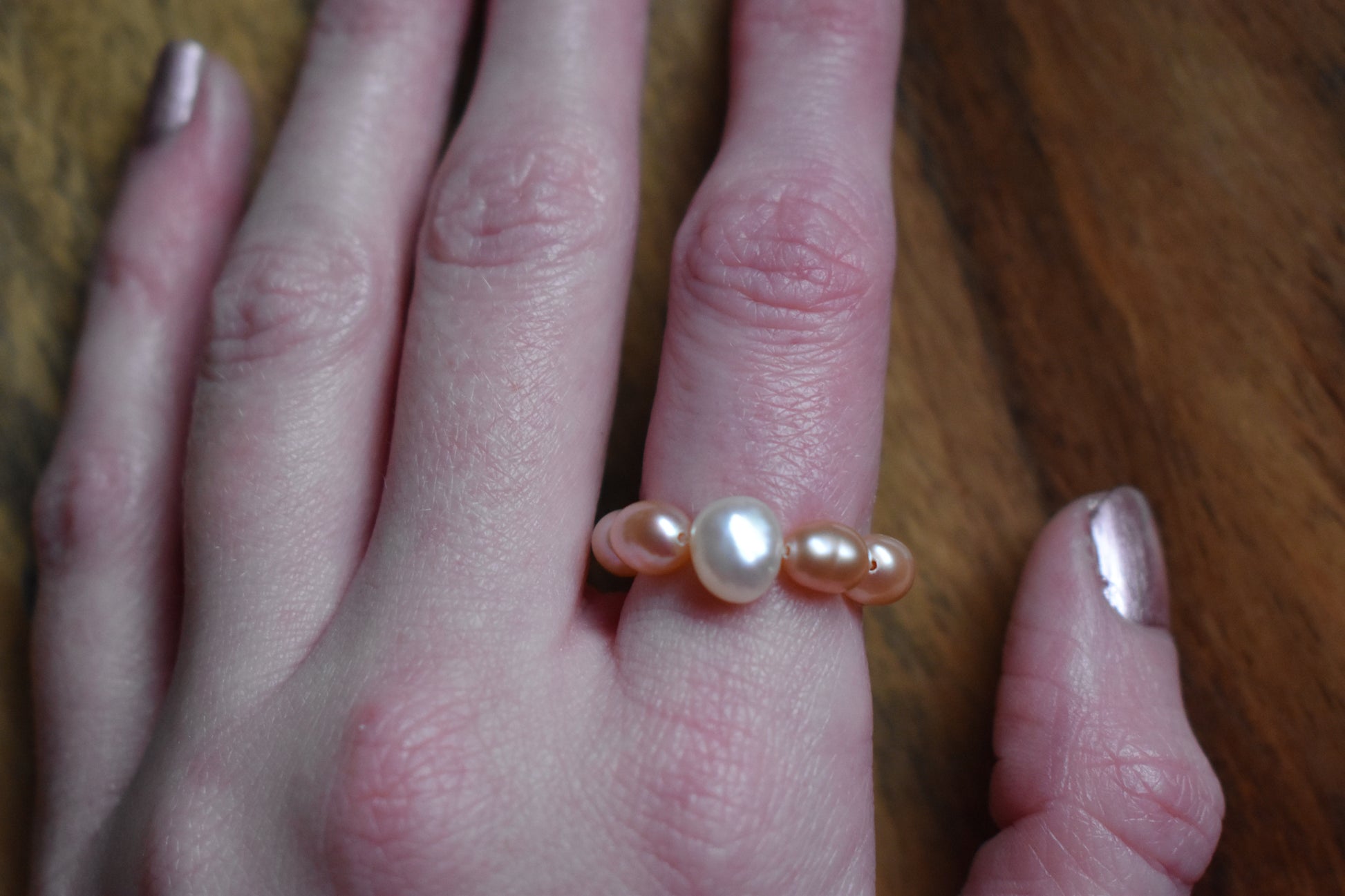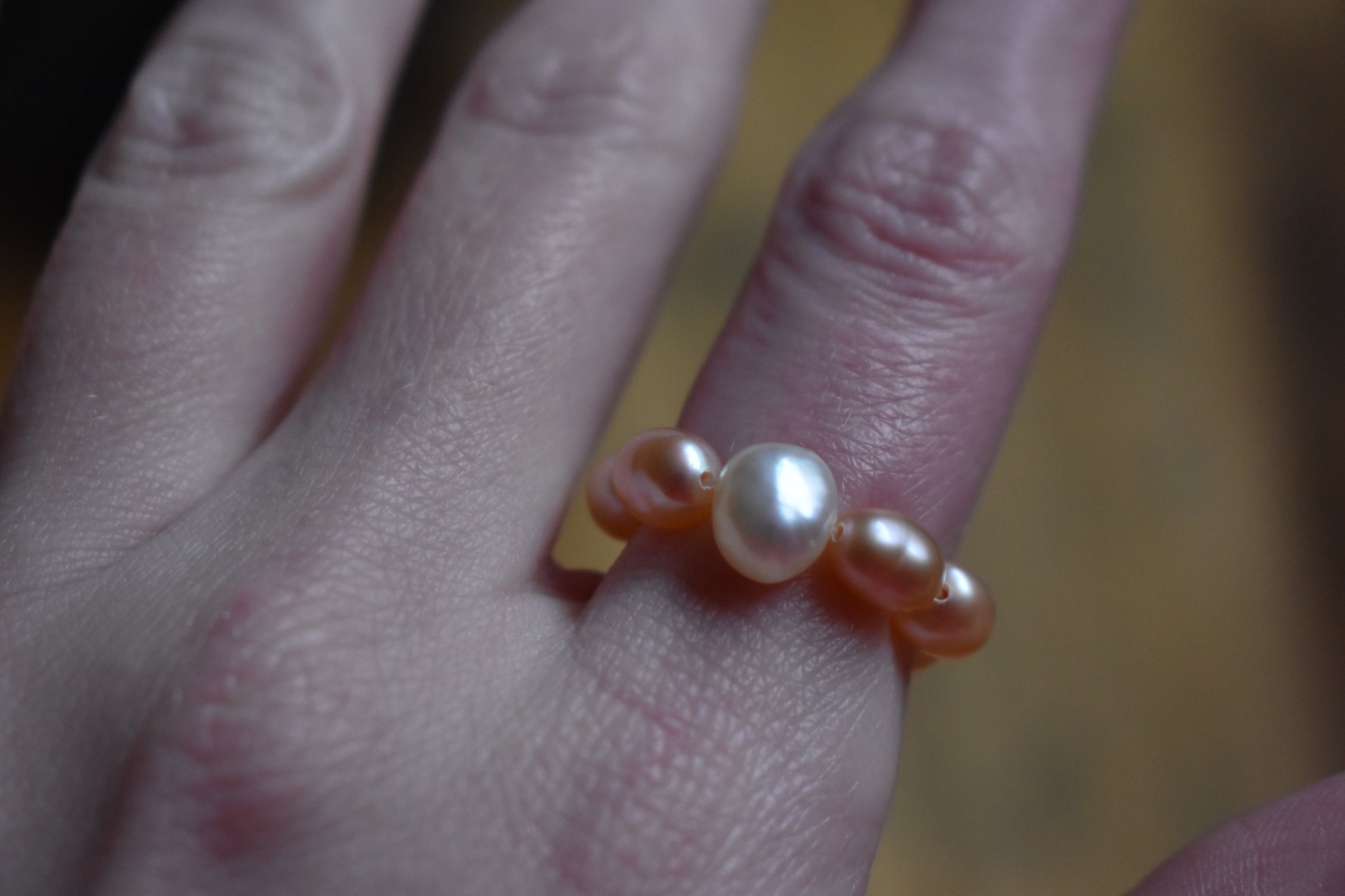 A delicate elastic ring made with soft blush-toned freshwater pearls and a single white accent pearl. Subtle, feminine, and easy to wear - perfect on its own or stacked with other rings. Each ring is handmade using natural freshwater pearls, so every piece is slightly unique.